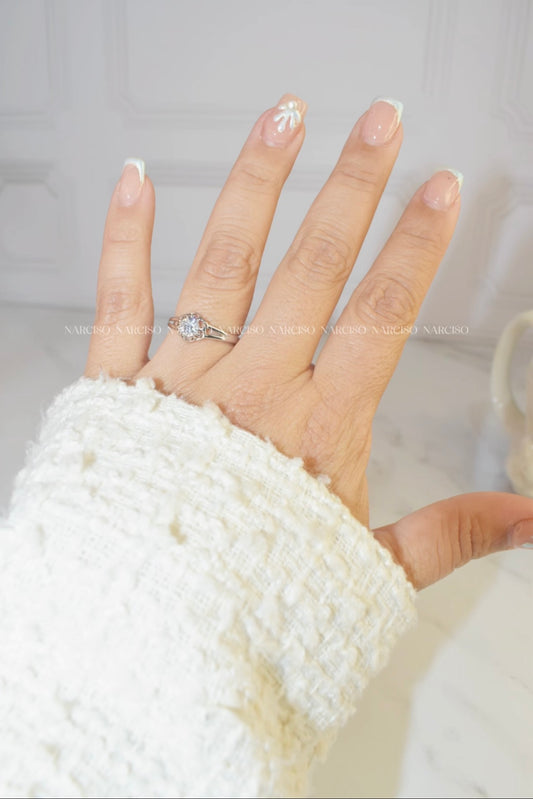 Anillo promesa flor plateada