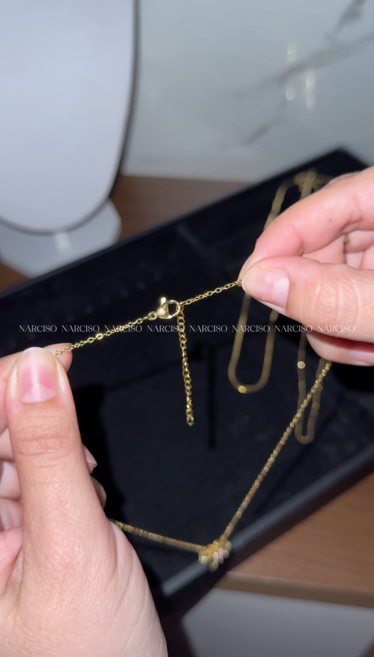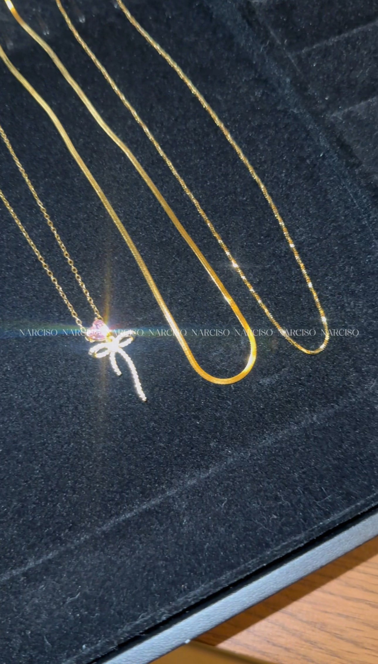 Este set triple de collares para dama en acero inoxidable dorado combina elegancia y estilo moderno. Incluye un delicado collar tipo snake, un collar con dije de moño que aporta un toque femenino, y un collar tejido twisted que destaca por su diseño contemporáneo. Cada pieza está diseñada para brindar durabilidad y sofisticación, permitiendo múltiples combinaciones que realzan cualquier atuendo con gracia y distinción.