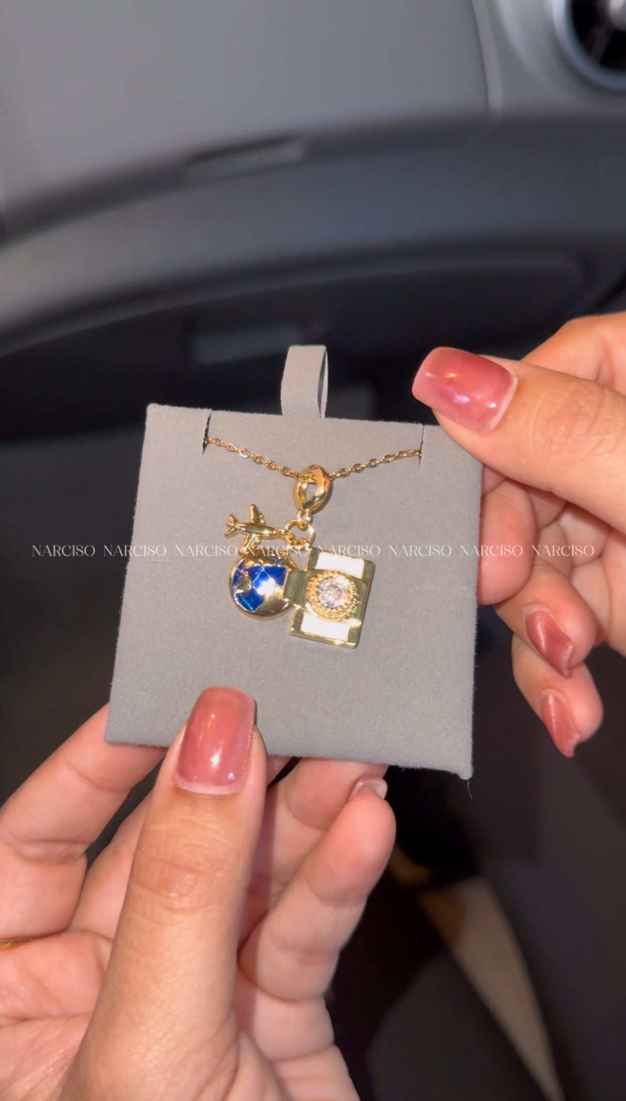 ¡Lleva tus sueños de viaje siempre contigo con nuestro collar de viajes multidijes! Con un diseño dorado y tres dijes que representan un avión, un mundo y una cámara, este collar es perfecto para los amantes de los viajes. Fabricado en acero inoxidable y circonitas para mayor durabilidad y brillo. ¡Haz tus sueños realidad y lleva tus recuerdos siempre cerca!