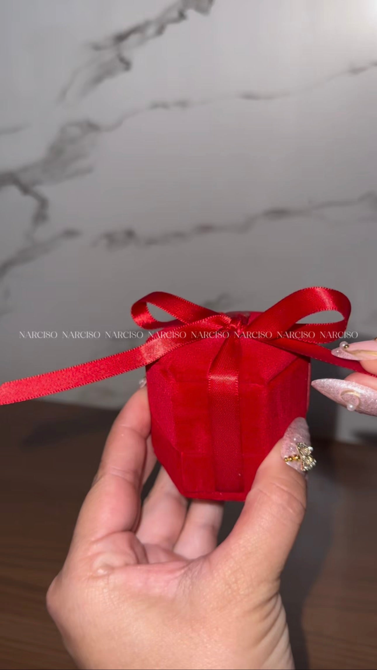 Este joyero rojo es ideal para guardar un collar o pulsera con un dije. Hecho de pana suave, cuenta con un listón para hacerle una linda moña. Mantén tus joyas organizadas y seguras en este práctico joyero.