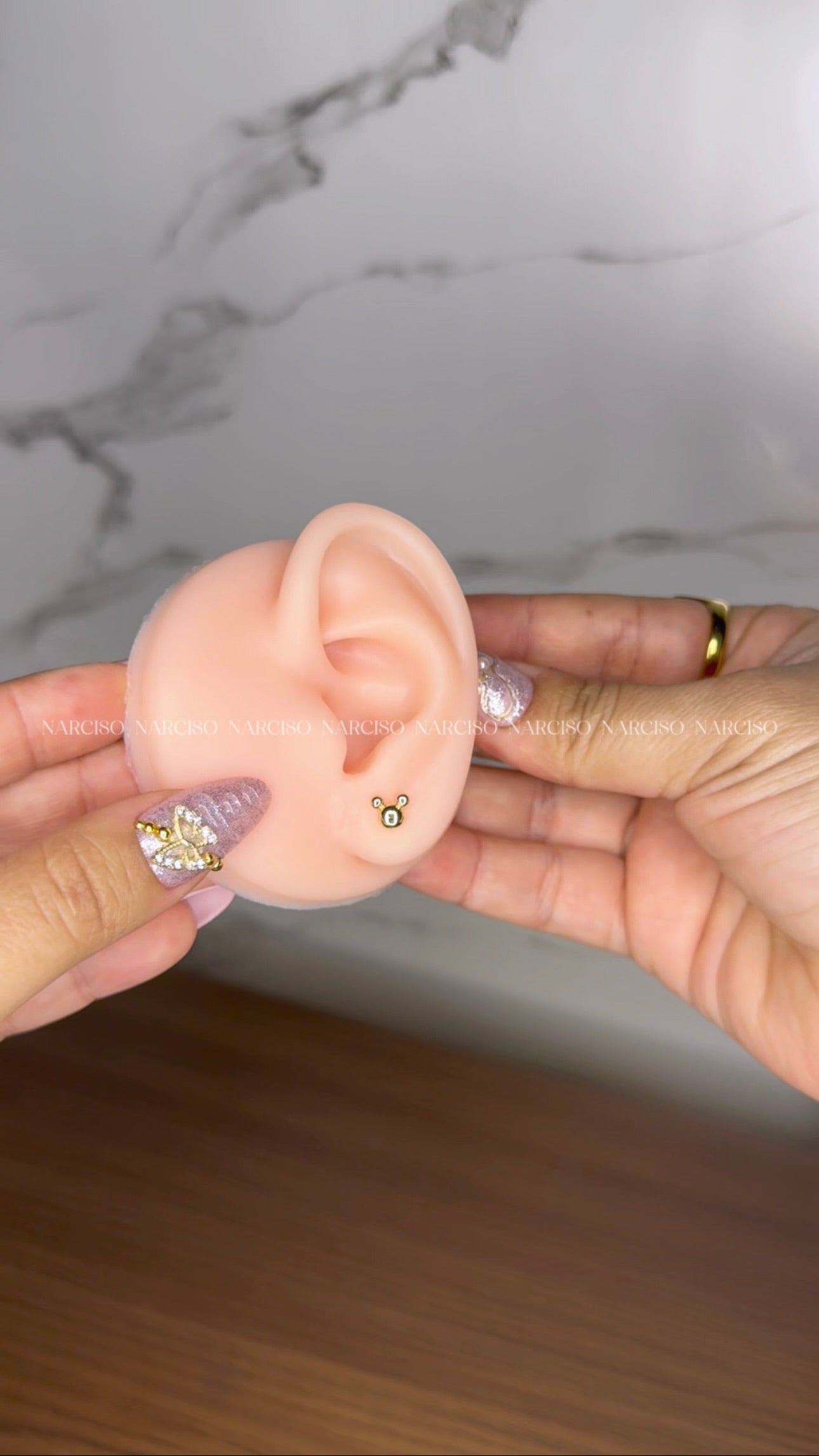 Dale un toque divertido a cualquier outfit con nuestros aretes pequeños tipo piercing de Mickey Mouse. Perfectos para niñas o adultos, con un baño de color oro que los hace elegantes y adorables al mismo tiempo. Un accesorio que no puede faltar en tu colección.