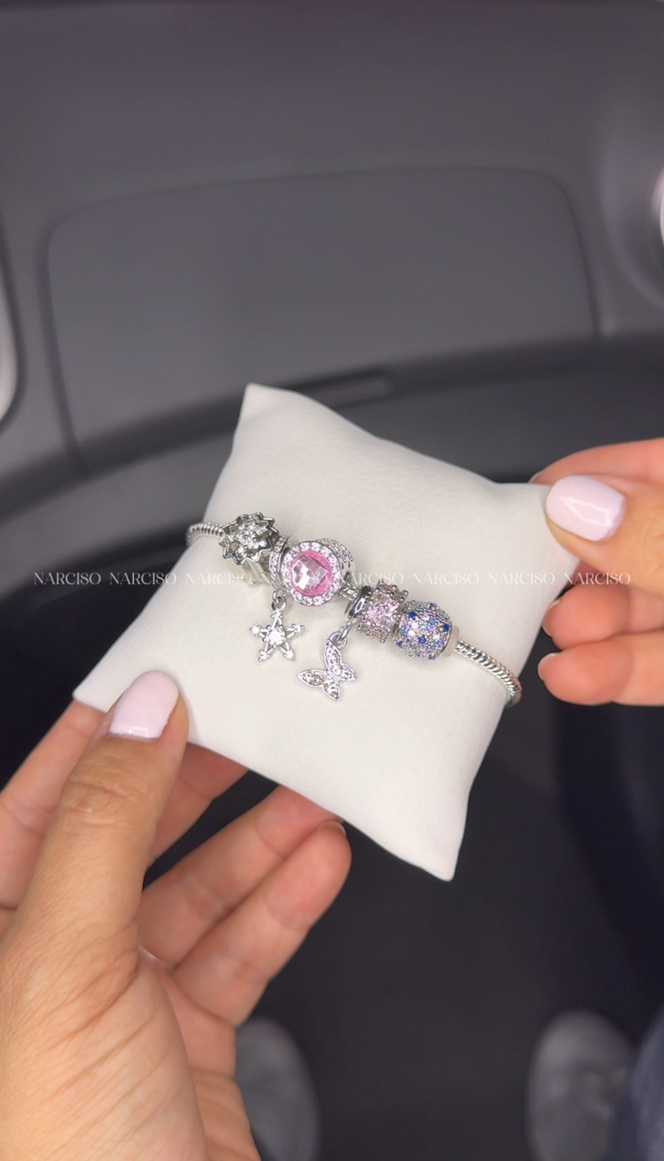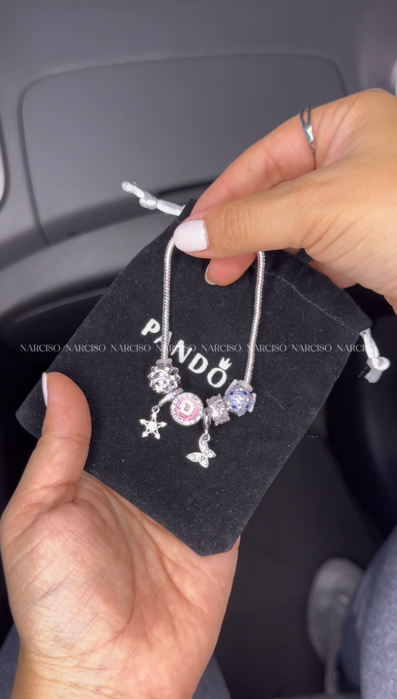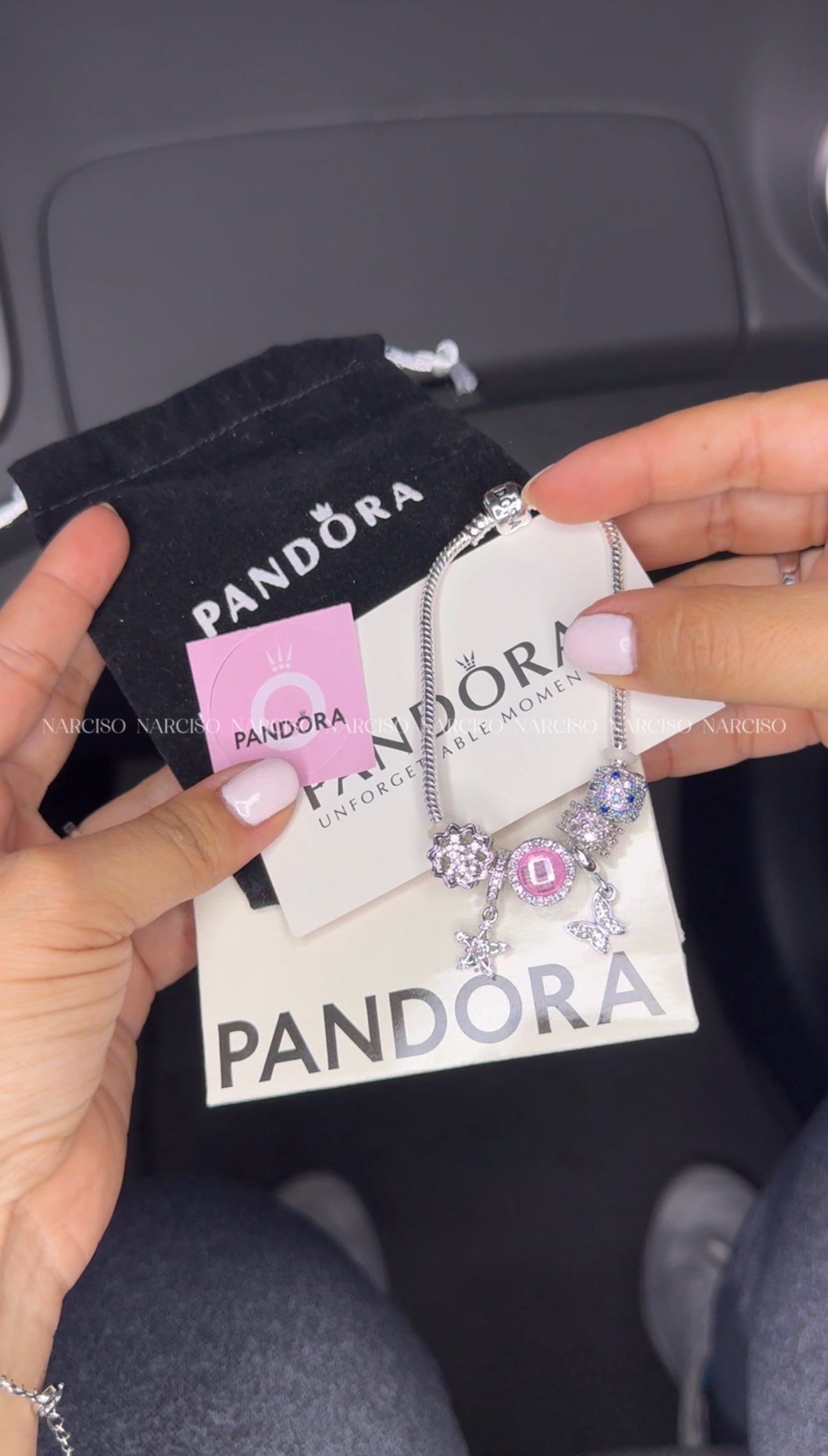 ¡Atrévete a ser única con nuestra pulsera tipo Pandora! Bañada en plata 925 con circonitas blancas, celestes, azules y rosadas, e incluye varios charms que te acompañarán en tus aventuras. Viene en una bolsa de papel y una bolsa de tela