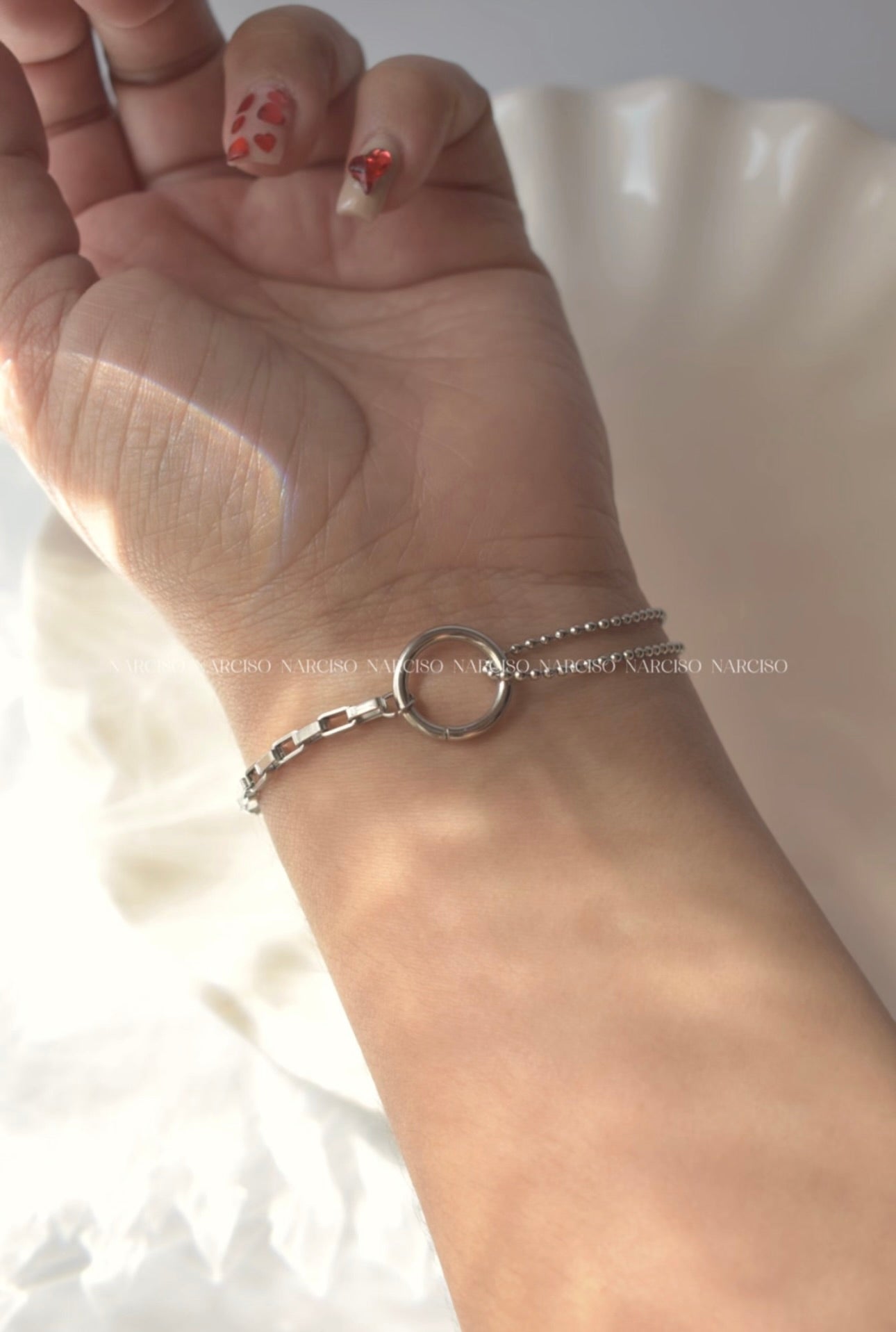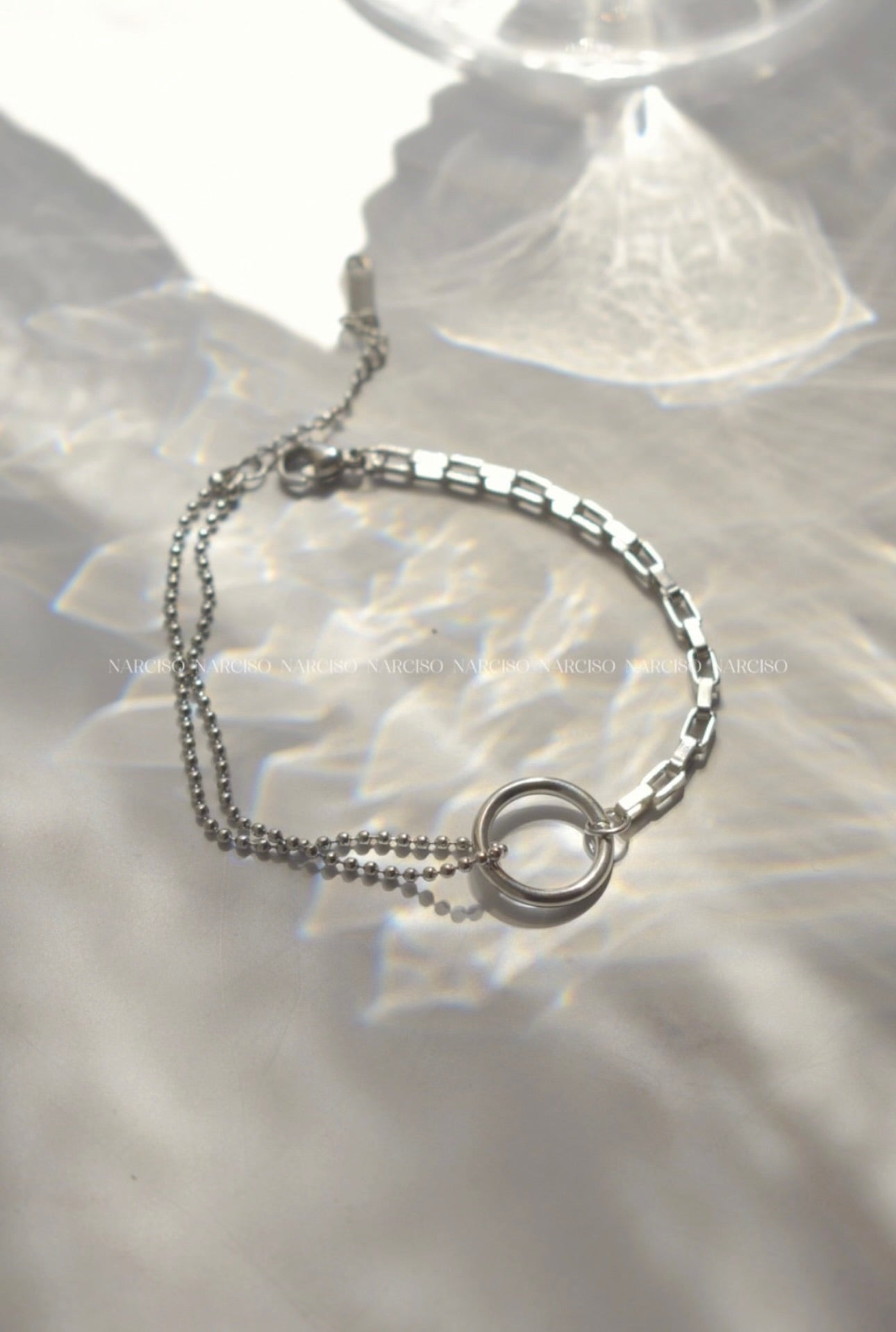 La pulsera Plateada mixta presenta un diseño innovador con dos tejidos que ofrecen una combinación estética y funcional. Esta estructura permite una mayor durabilidad y comodidad al usuario, garantizando un ajuste óptimo. Su versatilidad la hace adecuada para diversas ocasiones, destacando la elegancia en cada uso.