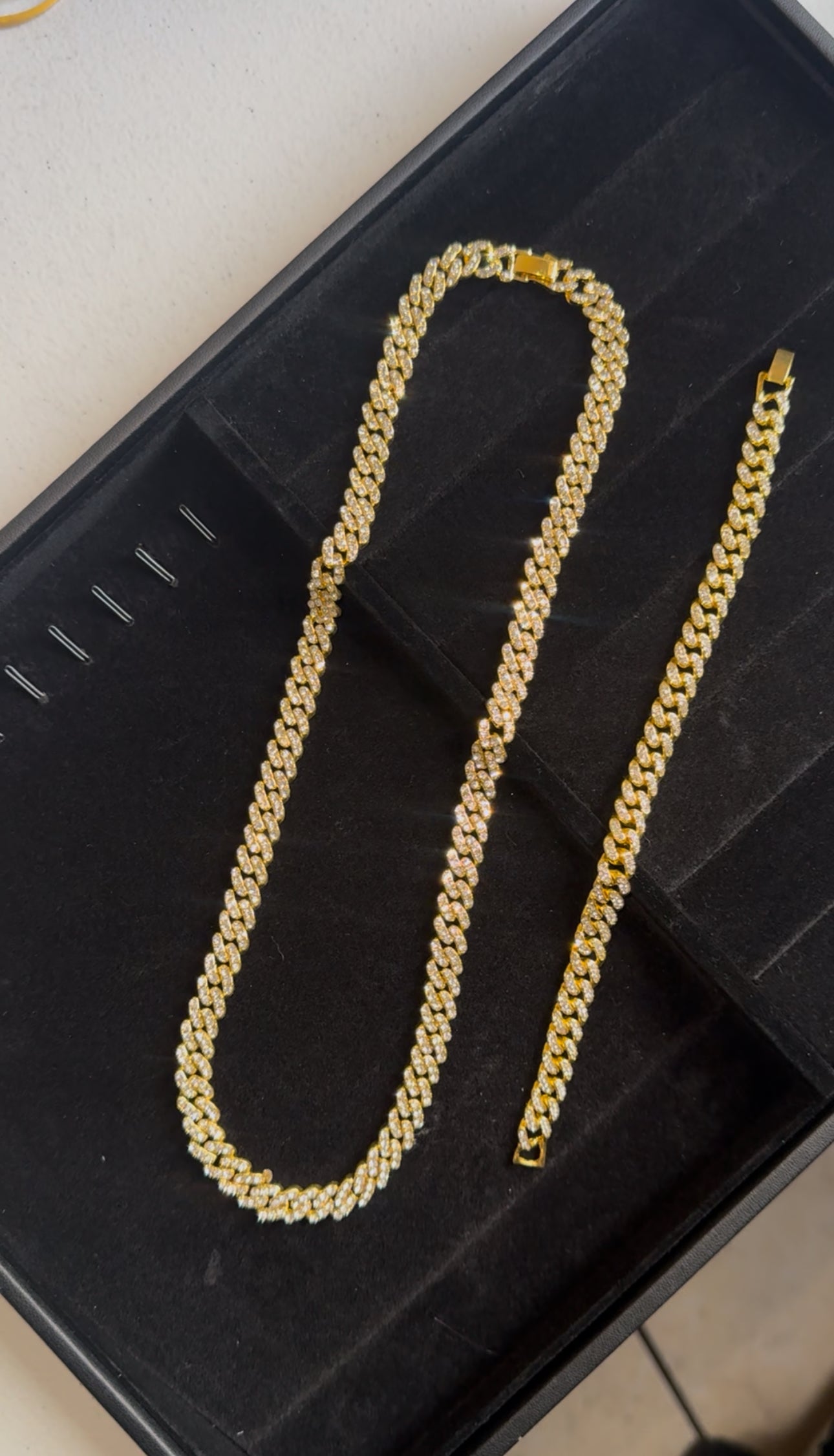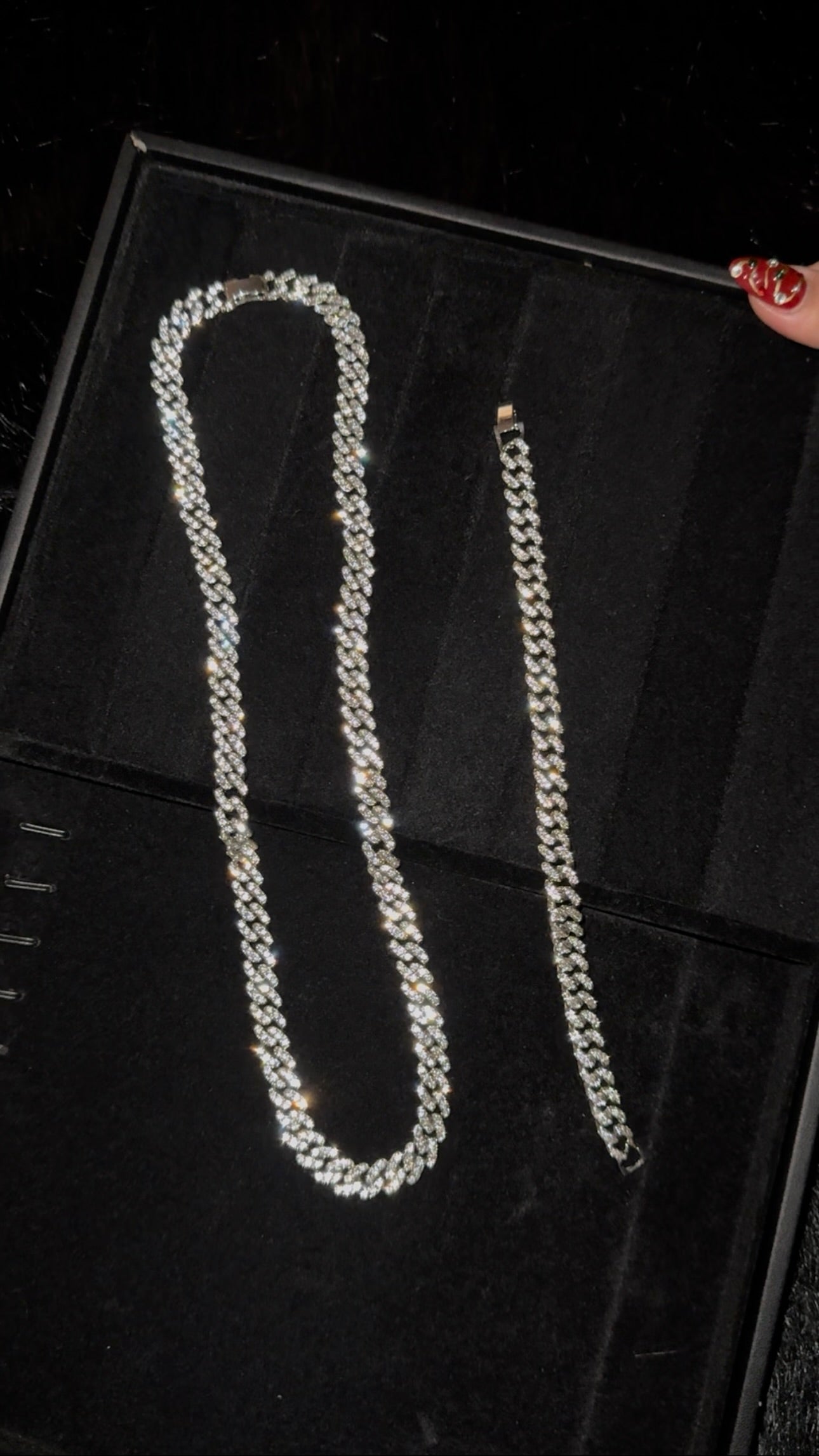 ¡Luce sofisticado con nuestro Set brilloso para caballero! El set incluye cadena y esclava en color plateado, decorados con cientos de circonitas brillantes que te harán destacar en cualquier ocasión. ¡Agrega un toque de lujo a tu estilo con este set imprescindible!