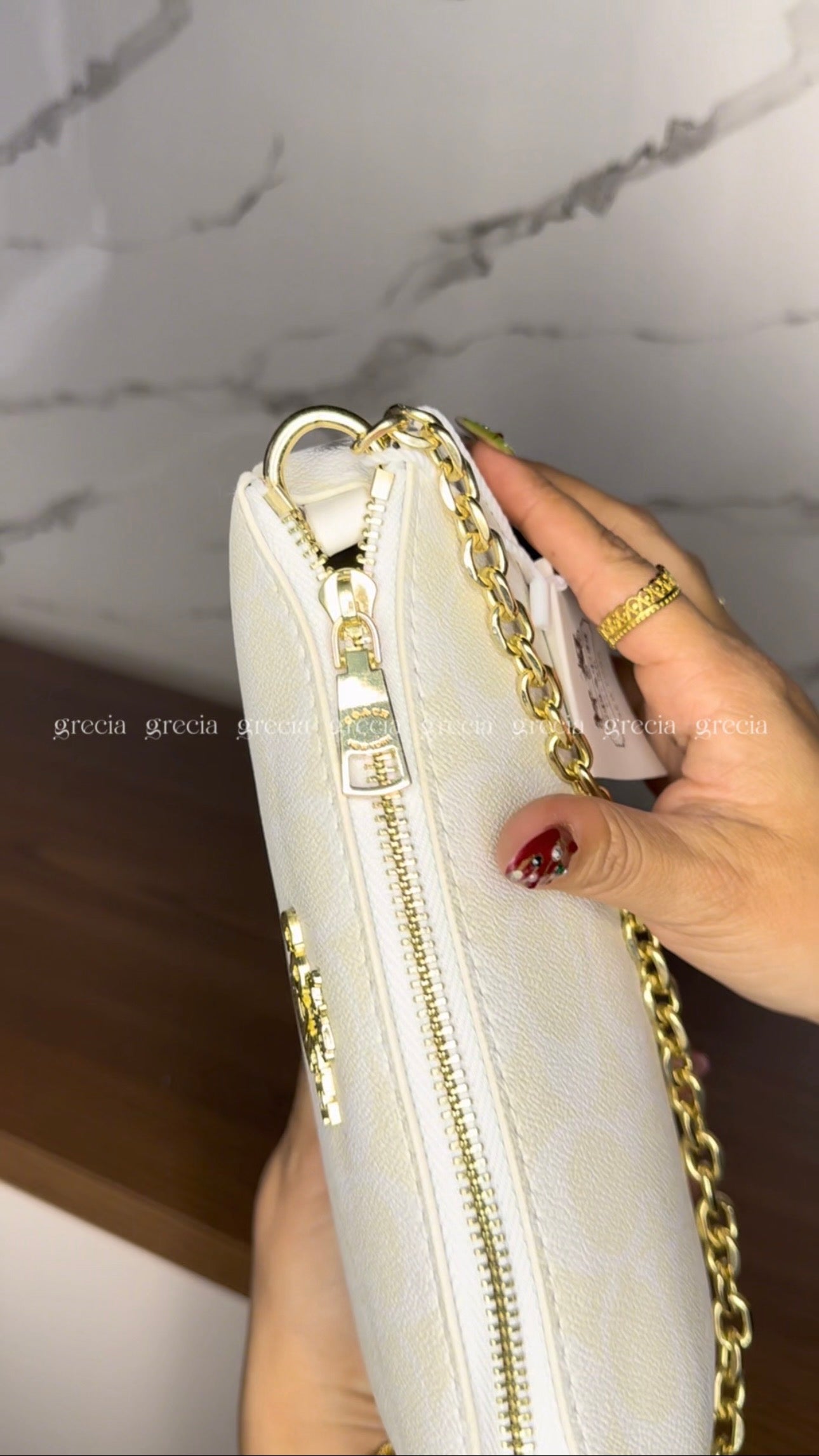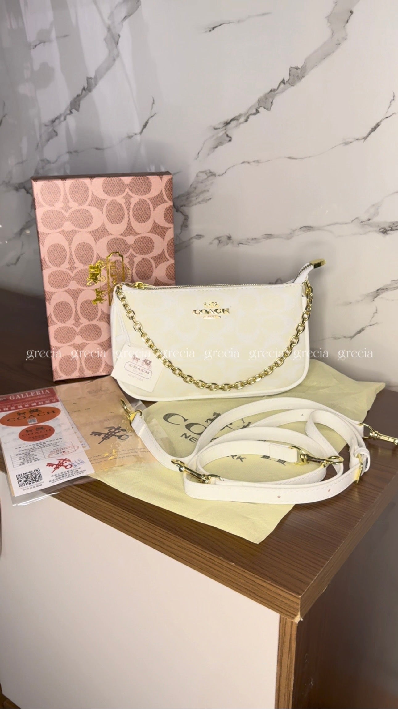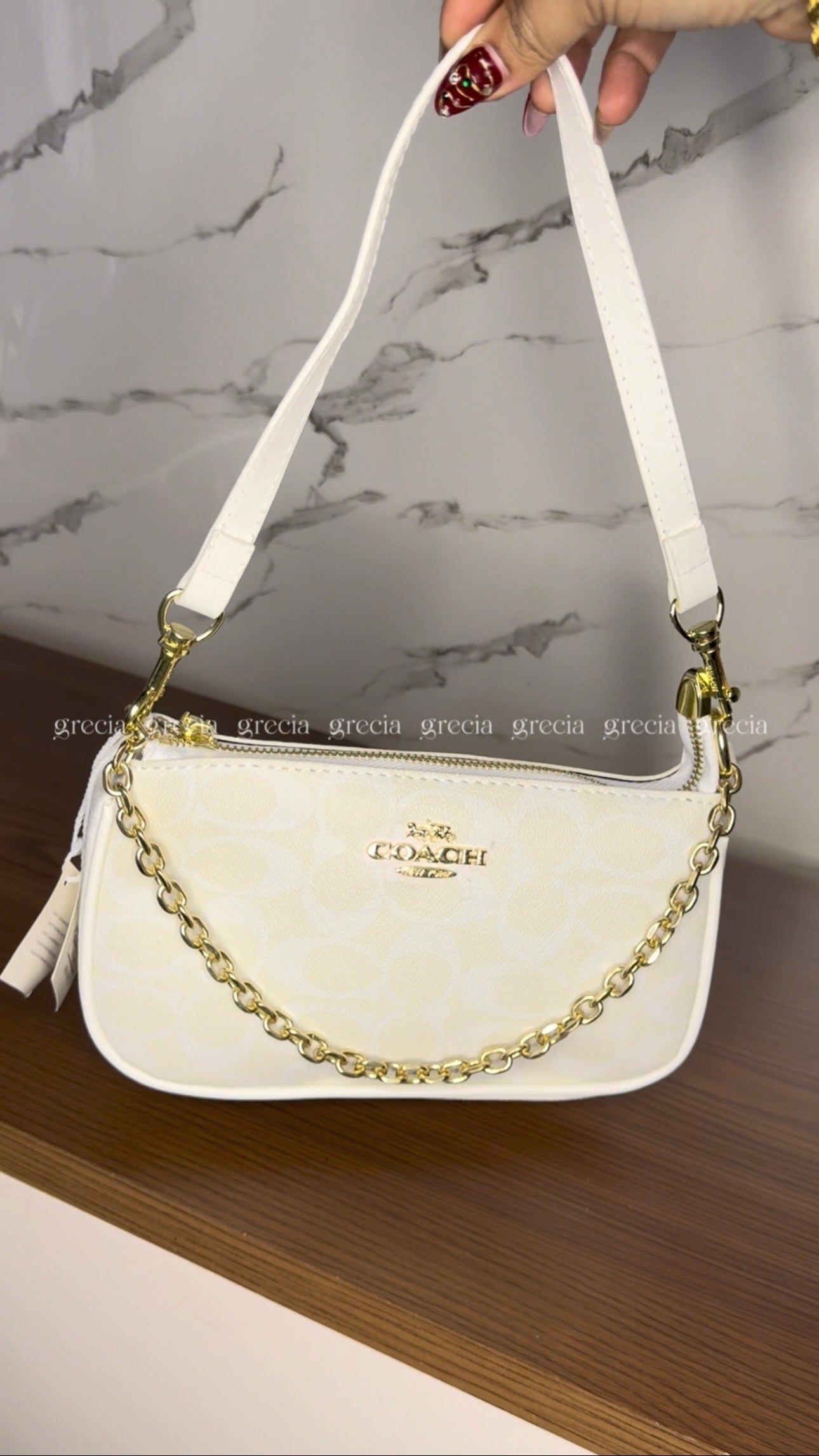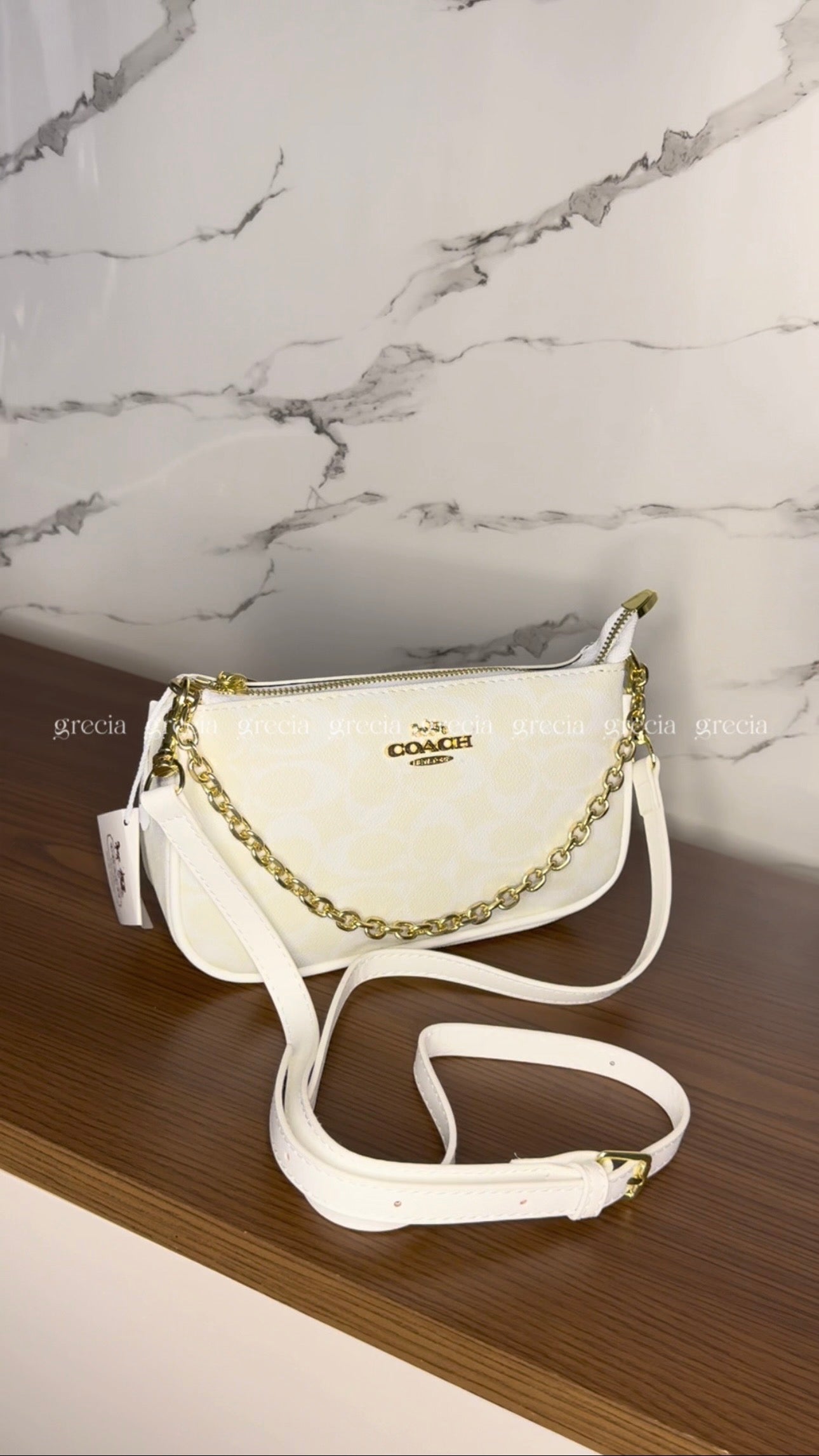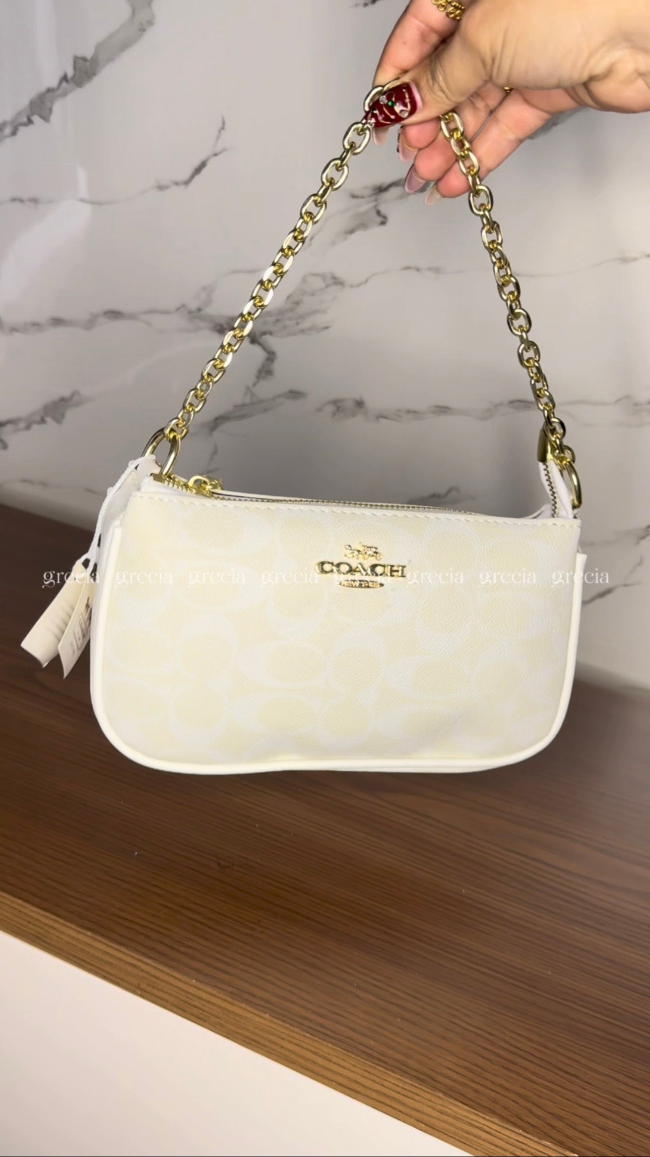 El Coach Nolita blanca es una declaración de elegancia atemporal, una réplica exacta que encarna la esencia del lujo. Su delicado tono blanco, complementado por dos straps versátiles y una cadena refinada, evoca un sentido de exclusividad. Este bolso es la elección perfecta para quien aprecia la sofisticación y el arte de la moda en cada detalle.